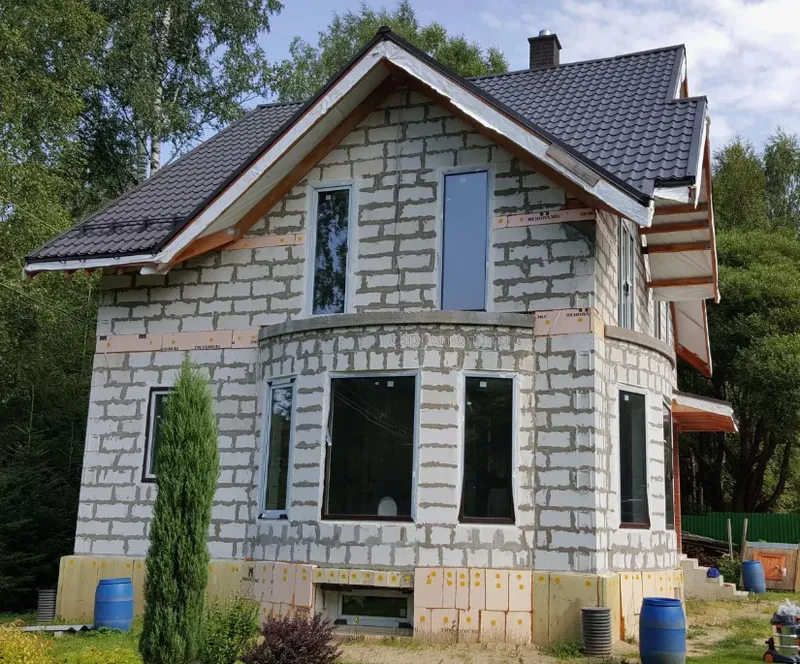 - Суть внешней отделки стен заключается в том, чтобы защитить их от атмосферного увлажнения. Мало того, что намокшая кладка теряет свои теплоизоляционные свойства, так ещё и вода, замерзающая в порах, расширяется и вызывает трещинообразование.