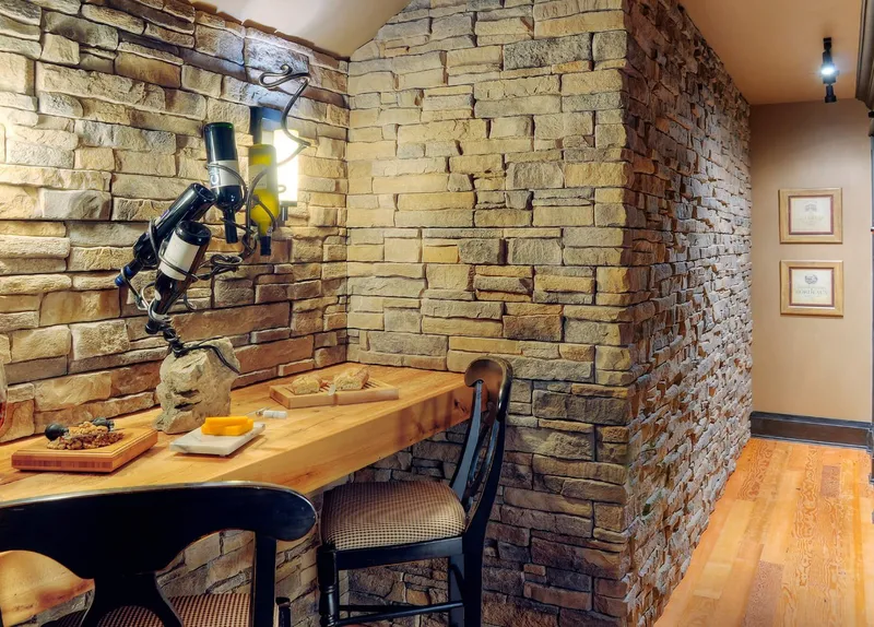 Другое дело интерьер, ведь там голая кладка обычно применяется в качестве акцента, только на одной стене. Лучше если эта стена будет внутренней – при возведении перегородок блоки чаще кладут на пенополиуретановый клей, не оставляющий следов, делающий кладку более аккуратной.
