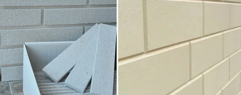 - Из тех, что есть - это декоративная плитка под кирпич и блоки с фаской под покраску, изготовленные тоже из газобетона. Их делают с плотностью 200-300 кг/м³, что ниже, чем у основной стены, поэтому проблем с паровыведением не возникает.