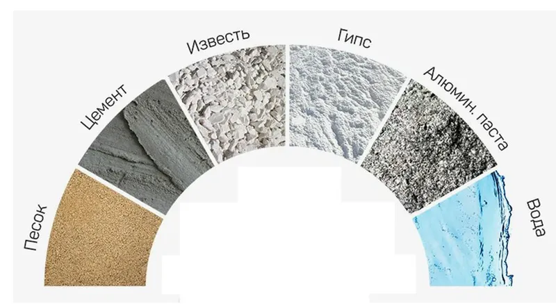 - Четвёртым сухим компонентом газобетона является двуводный гипс - твёрдый кристаллический природный минерал, применяемый в качестве добавки. С её помощью регулируют время набора пластической прочности, а так как в гипсе тоже содержится кальций, такая добавка благоприятно влияет и на конечную прочность камня.