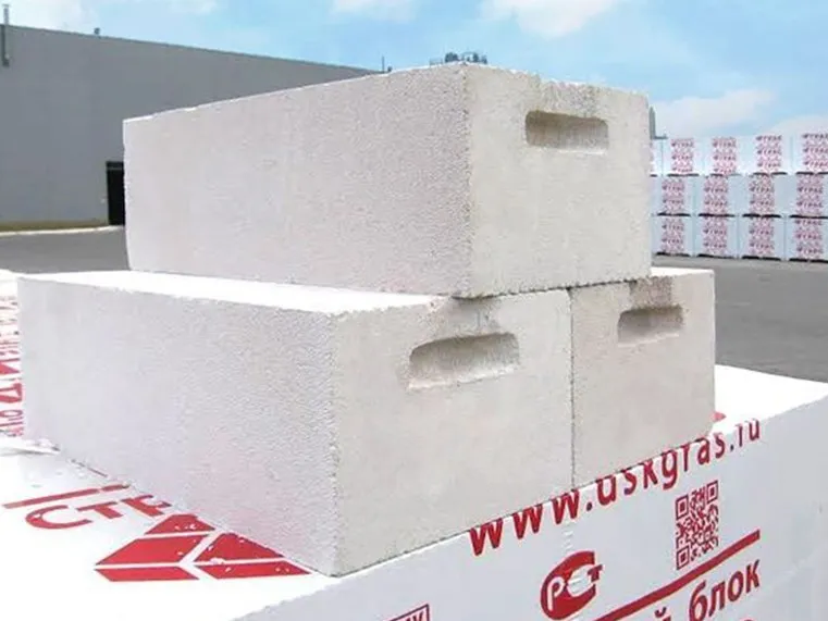 - Основным, но не единственным, потому что цемент тоже добавляется для прочности. Именно на комбинированном вяжущем изготавливают газобетон на заводах МПРК «ГРАС». Так как доля порошковой извести в сырьевых смесях больше, чем доля цемента, газоблоки называются газосиликатом. Визуально их можно отличить от цементных блоков по более светлому оттенку серого, или почти белому (конкретный цвет зависит от пропорций вяжущего).