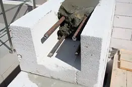 Блок U-образной формы используют в качестве несъёмной опалубки при заливке над проёмами перемычек и монолитных поясов. Размеры у разных производителей могут отличаться - например, длина не 600, а 500 мм. |