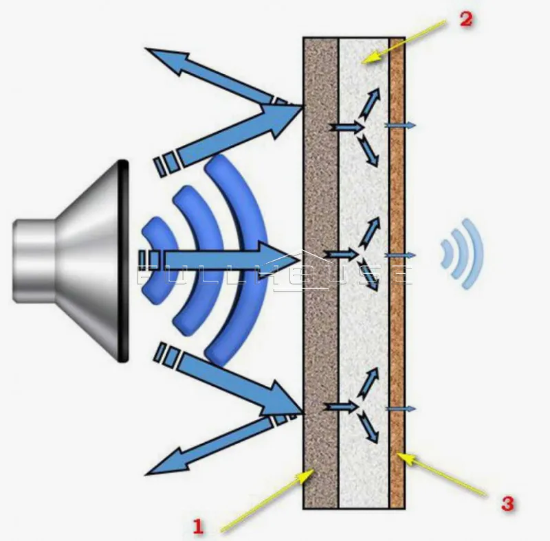 Чем плотнее материалы (базовый и отделочный), тем медленнее проходит звук