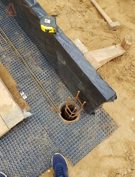 - В пучинистых грунтах ростверк сильно подвержен воздействию сил морозного пучения, а защитные меры в виде кругового монтажа пенополистирола, который нужно ещё укрыть ПВХ-мембраной, тоже являются удорожающим фактором. Поэтому самым экономичным вариантом является наземное заложение ростверка.